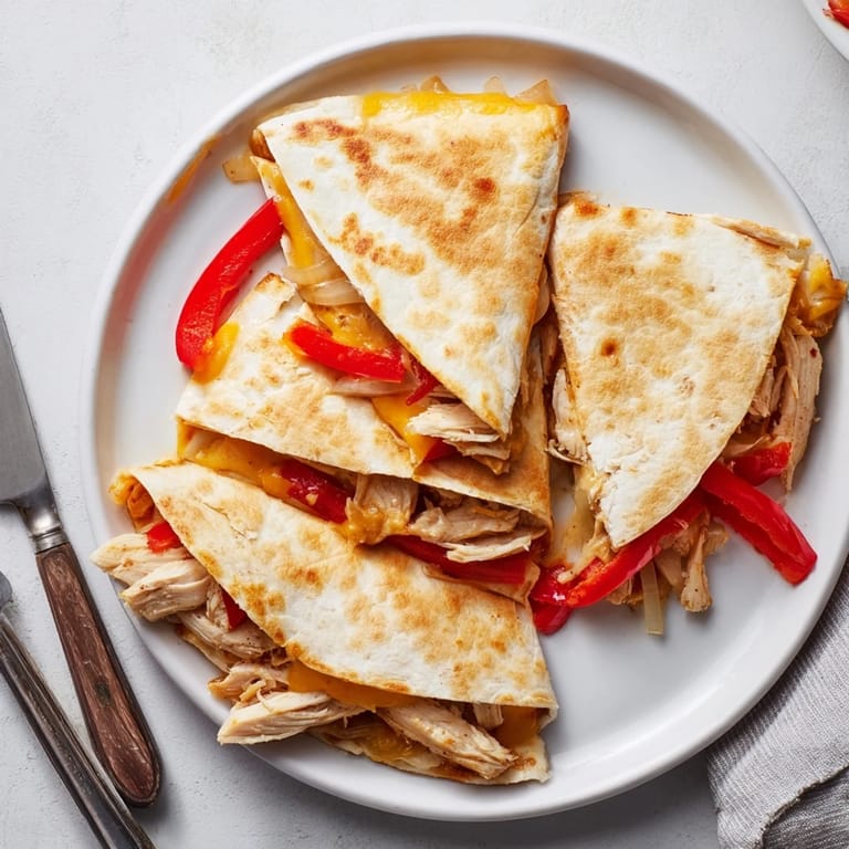 Pin It The smell of cumin and peppers hitting a hot skillet still takes me back to my first apartment kitchen where I learned that a quesadilla could be so much more than just cheese and tortilla. My roommate had brought home leftover grilled chicken from a weekend barbecue and challenged me to make something worth eating for midnight snacks. After a few attempts with soggy tortillas and unmelted cheese I finally nailed the technique that made our tiny kitchen smell like a Mexican cantina.