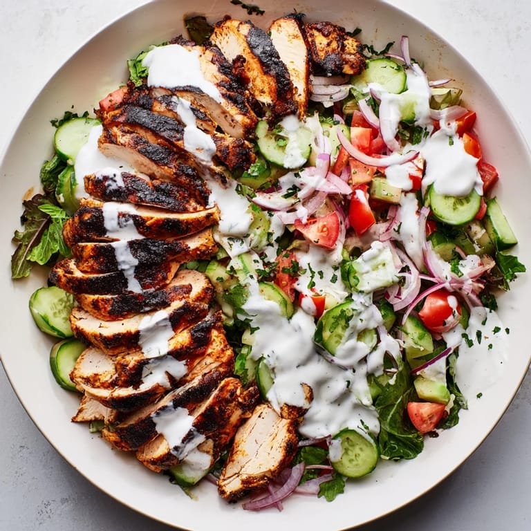 Pin It The spice drawer was open, and I was tossing cumin and coriander into a bowl without measuring, just going by scent. My neighbor had brought back shawarma spices from a trip to Beirut, and I wanted to use them on chicken but skip the pita. The kitchen smelled like a street market, warm and a little smoky. I sliced some vegetables, mixed yogurt with lemon, and realized this salad didn't need anything else. It tasted like summer evenings and felt lighter than any dinner I'd made that week.