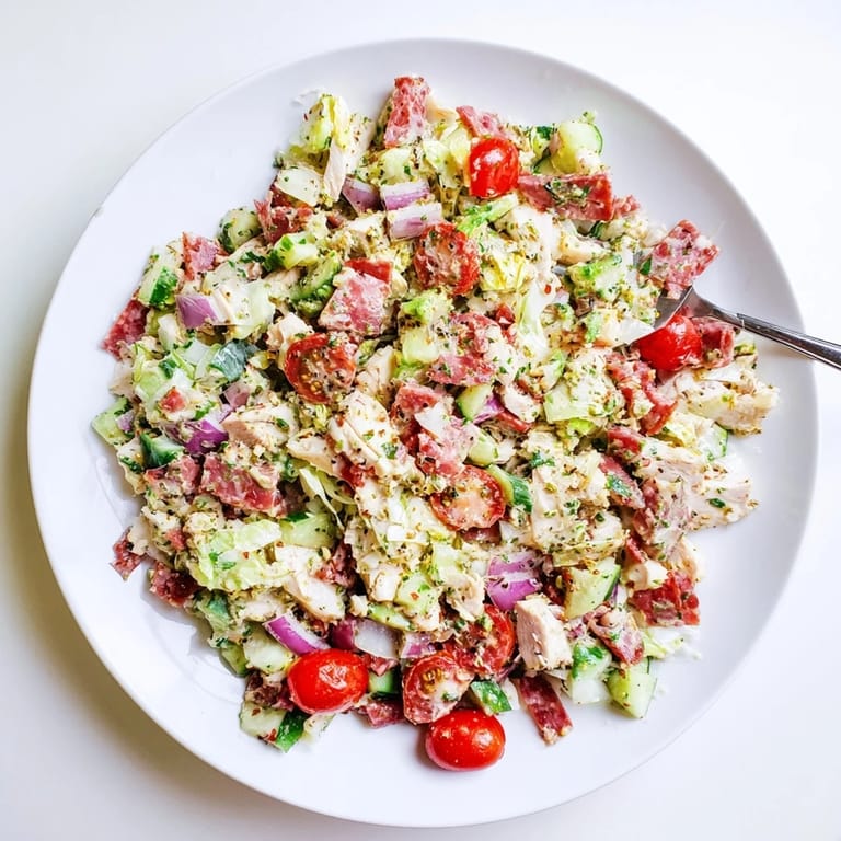 Pin It I stumbled onto this combination during a chaotic weeknight when the fridge was full of odds and ends from a weekend party. The salami and provolone were leftover from an antipasto platter, and I had grilled chicken from the night before. Throwing it all together with that tangy dressing felt like a revelation, and now it is my go-to when I want something substantial but not heavy.