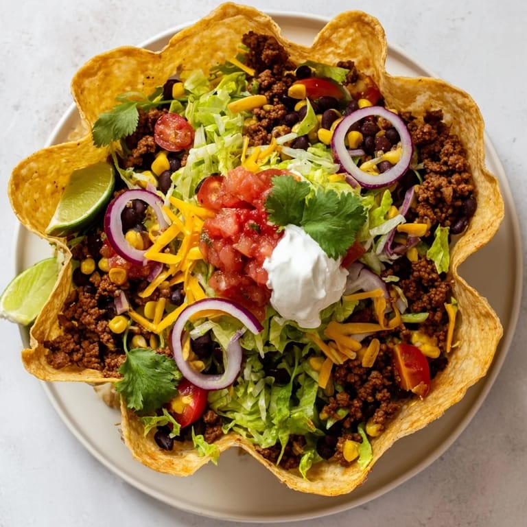 Pin It The first time I made taco salad, my kitchen smelled like a Mexican cantina on a Friday night. I had friends coming over and wanted something fun, not just tacos again. Those crispy tortilla bowls turned out so golden that everyone kept asking how I managed to make restaurant quality food at home.
