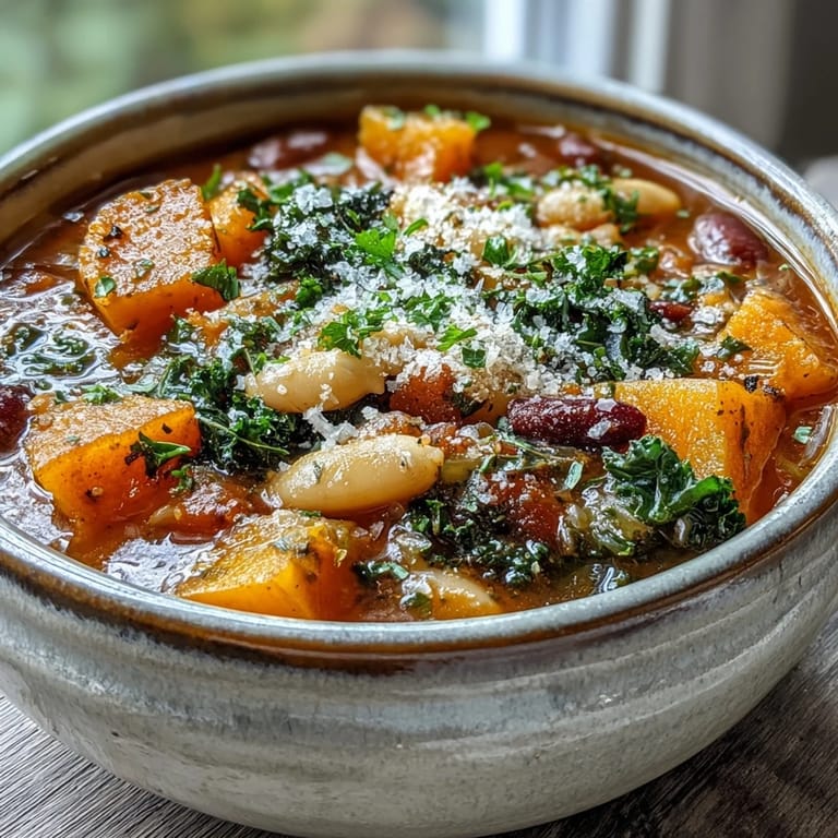 Pin It There's something about the smell of butternut squash caramelizing in olive oil that makes November feel less grey. I stumbled onto this soup during a farmer's market visit when I couldn't resist buying an enormous squash I had no immediate plans for—but standing in my kitchen that afternoon with the first real cold snap outside, it felt obvious. This minestrone came together almost by accident, borrowing from memories of my neighbor's kitchen and a half-remembered Italian cookbook, turning what could have been a sad vegetable situation into something my whole family asked for again the next week.